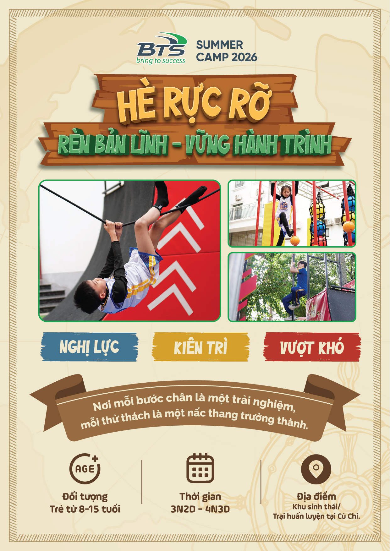 Chương trình giáo dục trải nghiệm – huấn luyện bản lĩnh sống, giúp trẻ phát triển nội lực, khả năng thích nghi và tư duy vượt thử thách trong môi trường an toàn, khoa học và nhân văn.
